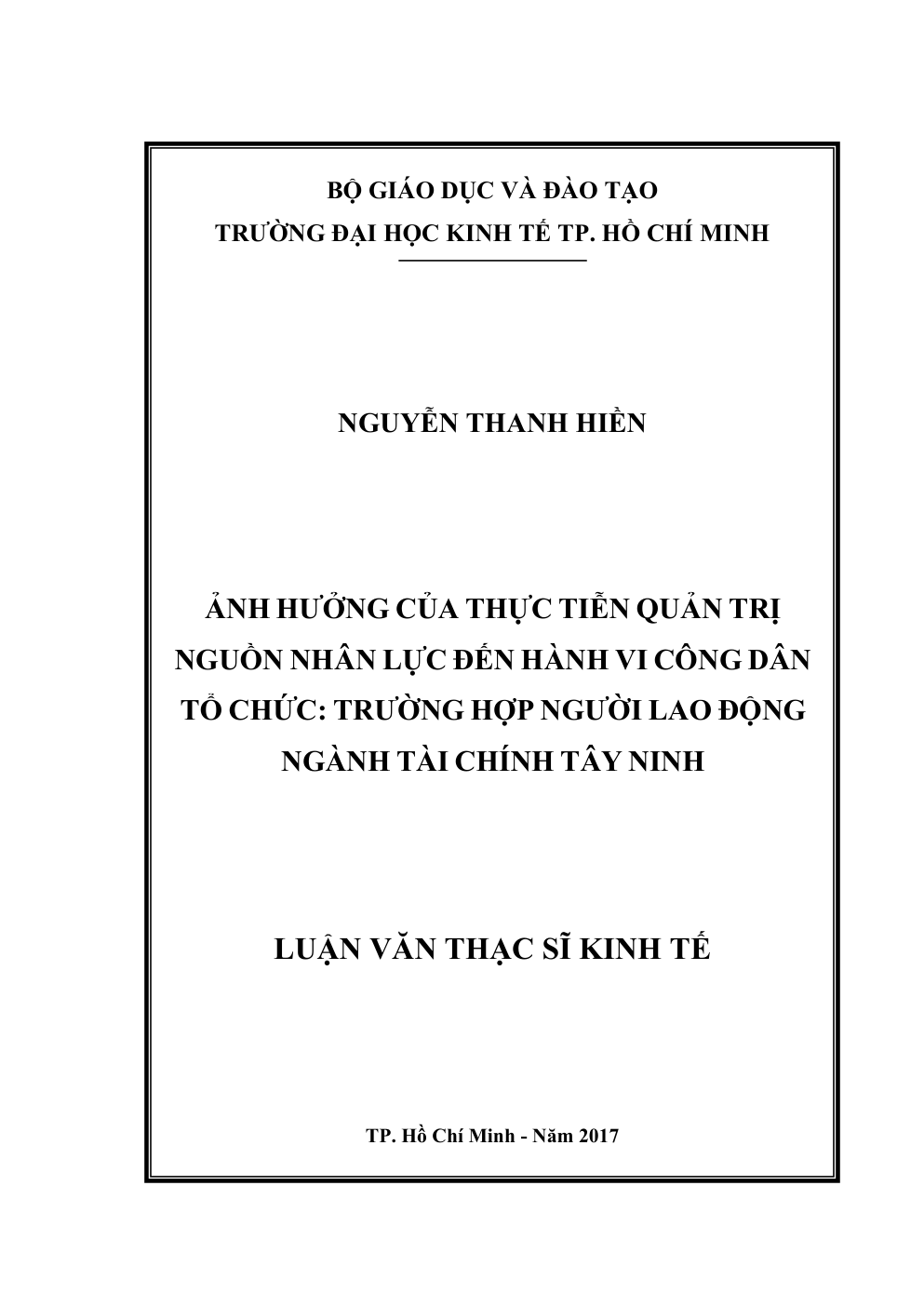 - Tên Luận văn: Ảnh hưởng của thực tiễn quản trị nguồn nhân lực đến hành vi công dân tổ chức: Trường hợp người lao động ngành Tài chính Tây Ninh