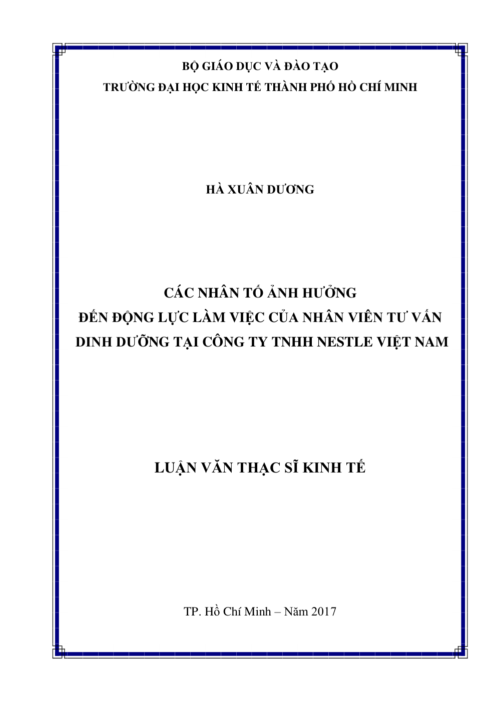- Tên Luận văn: Các nhân tố ảnh hưởng đến động lực làm việc của Nhân viên tư vấn dinh dưỡng tại Công ty TNHH Nestle Việt Nam