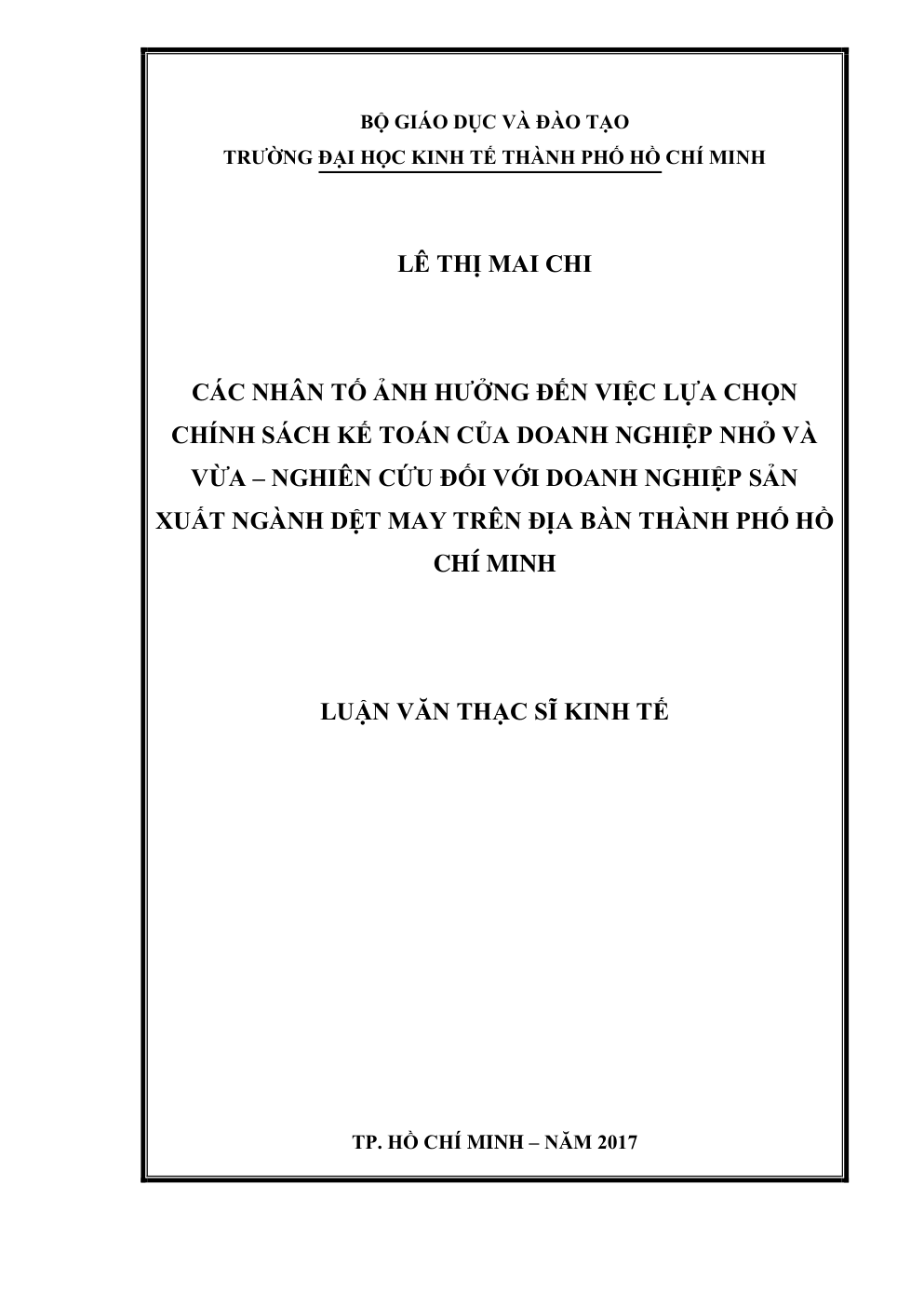 Các Nhân Tố Ảnh Hưởng Đến Việc Lựa Chọn Chính Sách Kế Toán Của Doanh Nghiệp Nhỏ Và Vừa – Nghiên Cứu Đối Với Doanh Nghiệp Sản Xuất Ngành Dệt May Trên Địa Bàn Thành Phố Hồ Chí Minh
