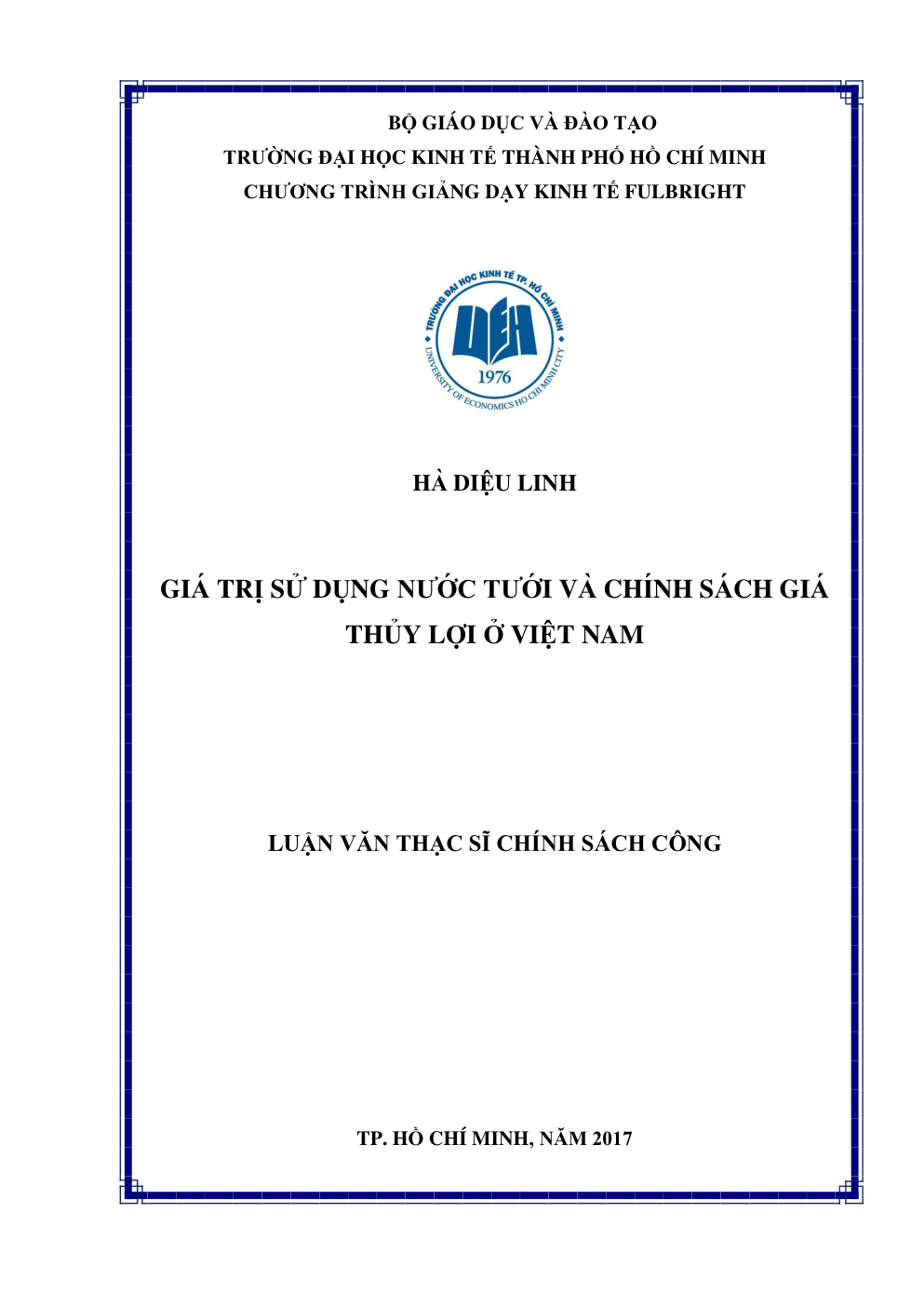 - Tên Luận văn: Giá trị sử dụng nước tưới và chính sách giá thủy lợi ở Việt Nam