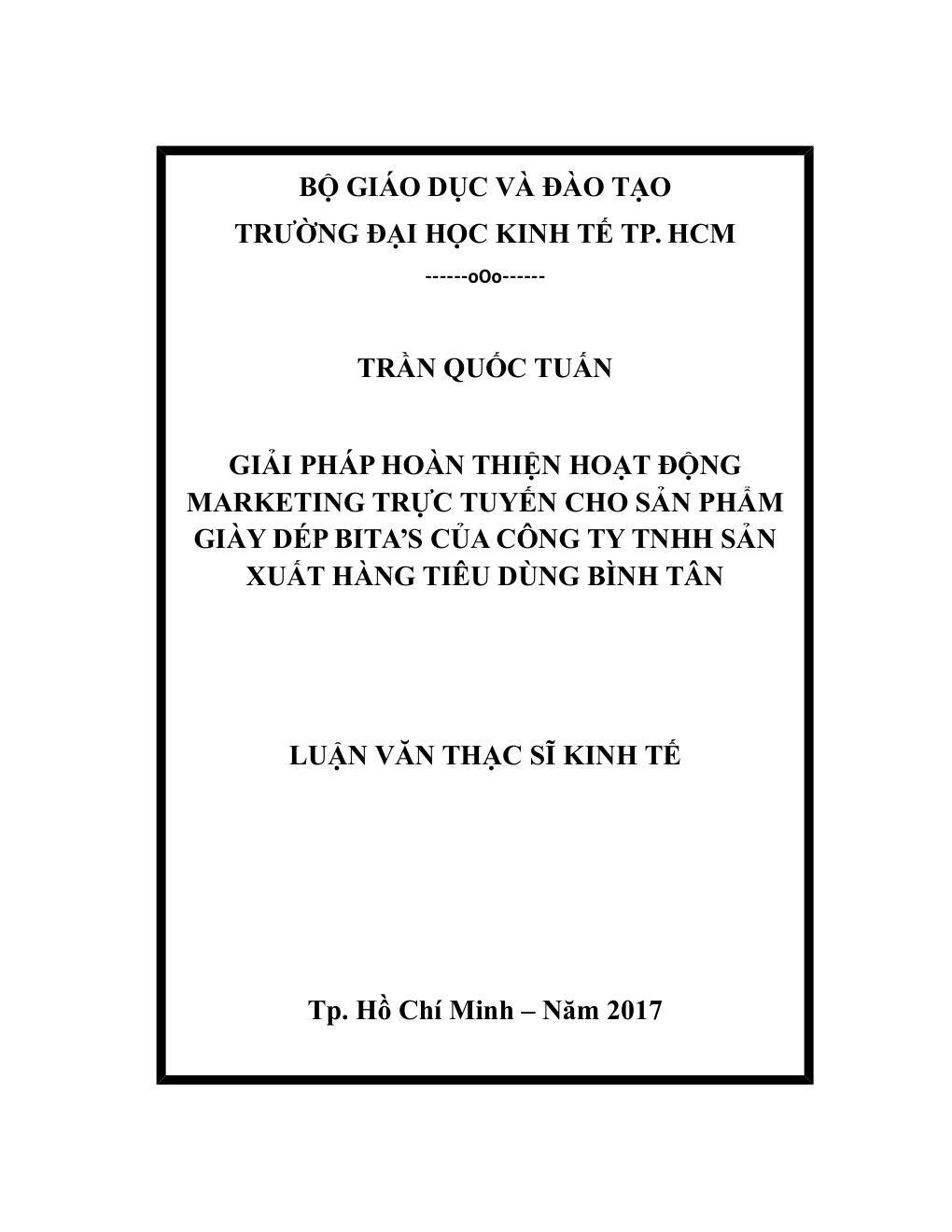 - Tên Luận văn: Giải pháp hoàn thiện hoạt động Marketing trực tuyến cho sản phẩm giày dép Bita’s của Công ty TNHH Sản xuất Hàng tiêu dùng Bình Tân