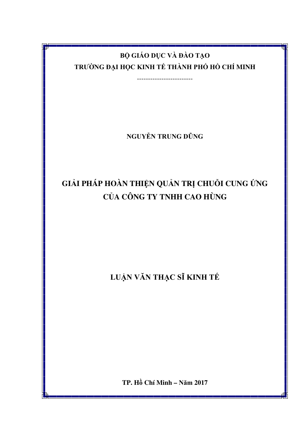 - Tên Luận văn: Giải pháp hoàn thiện quản trị chuỗi cung ứng của Công ty TNHH Cao Hùng