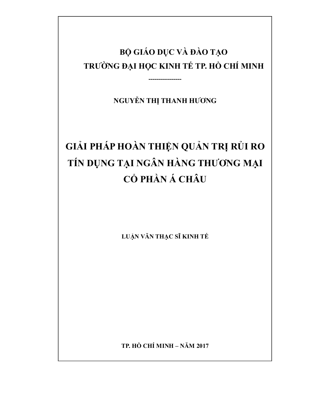 • Tên Luận văn: GIẢI PHÁP HOÀN THIỆN QUẢN TRỊ RỦI RO TÍN DỤNG TẠI NGÂN HÀNG THƯƠNG MẠI CỔ PHẦN Á CHÂU