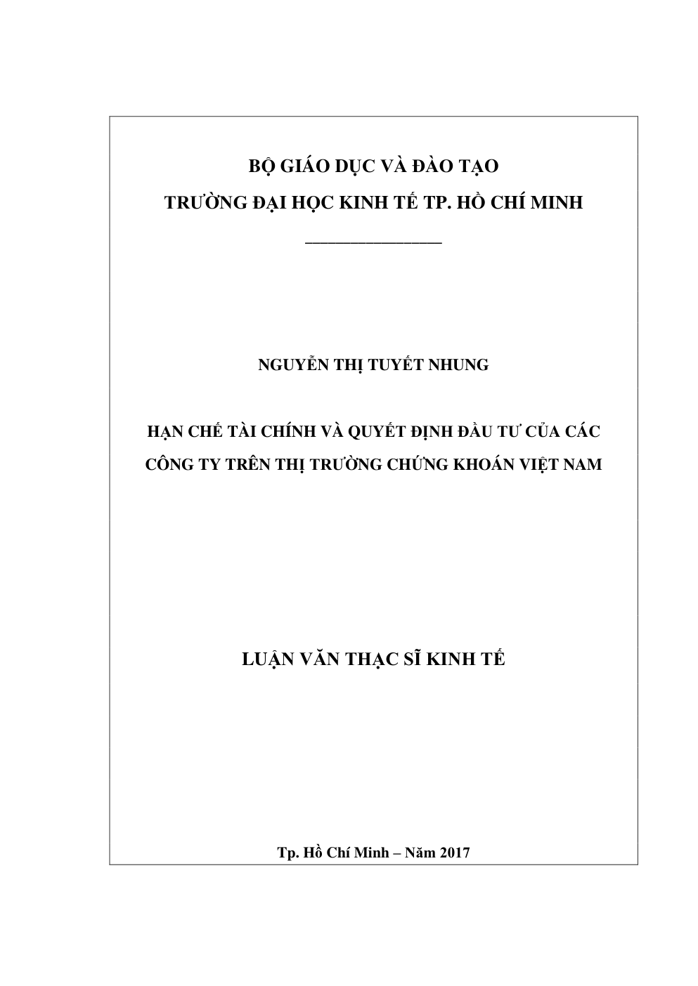 - Tên Luận văn: Hạn chế tài chính và quyết định đầu tư của các công ty trên thị trường chứng khoán Việt Nam