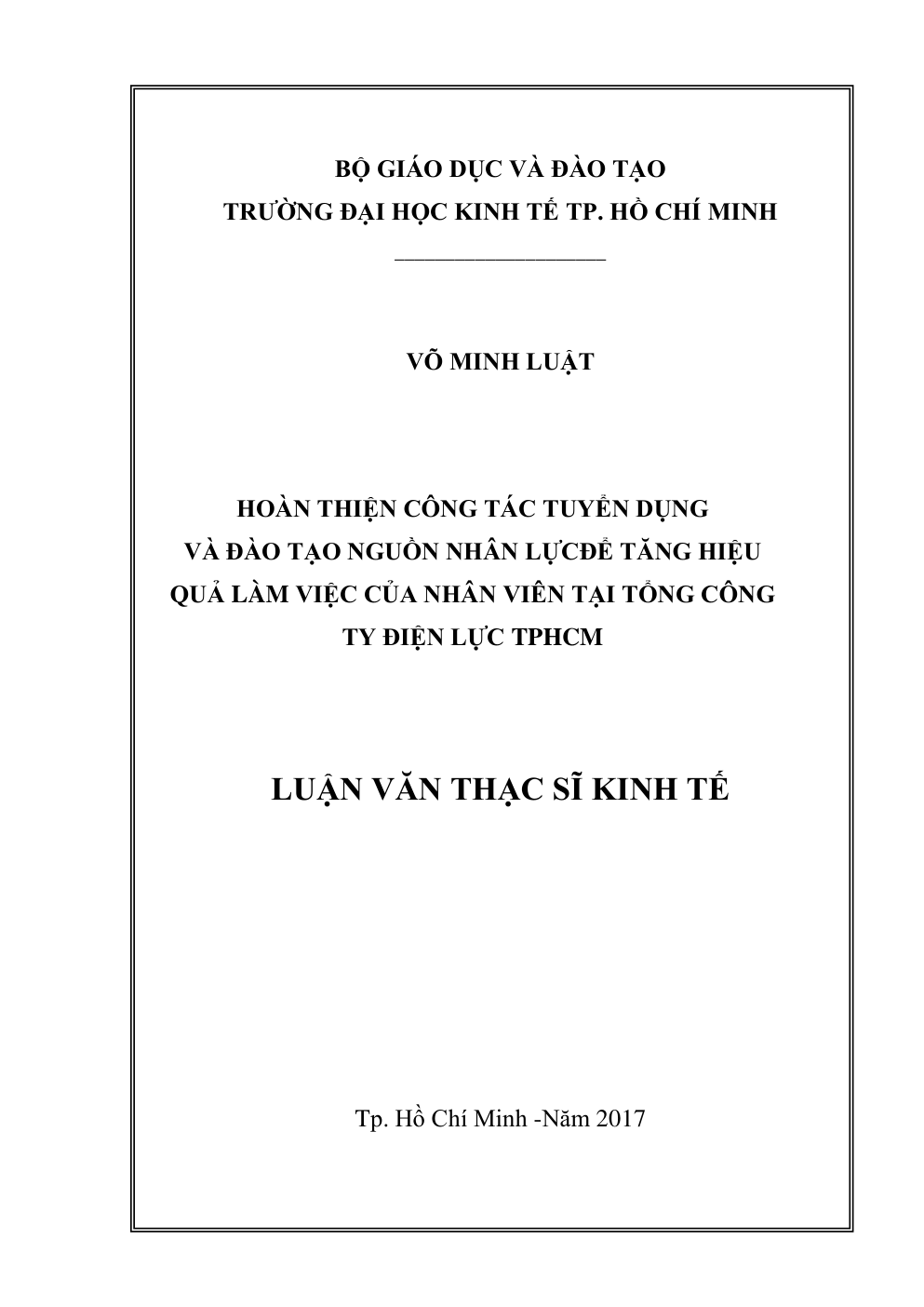 • Tên Luận văn: Hoàn thiện công tác tuyển dụng và đào tạo nguồn nhân lực để tăng hiệu quả làm việc của nhân viên tại Tổng công ty Điện lực TPHCM