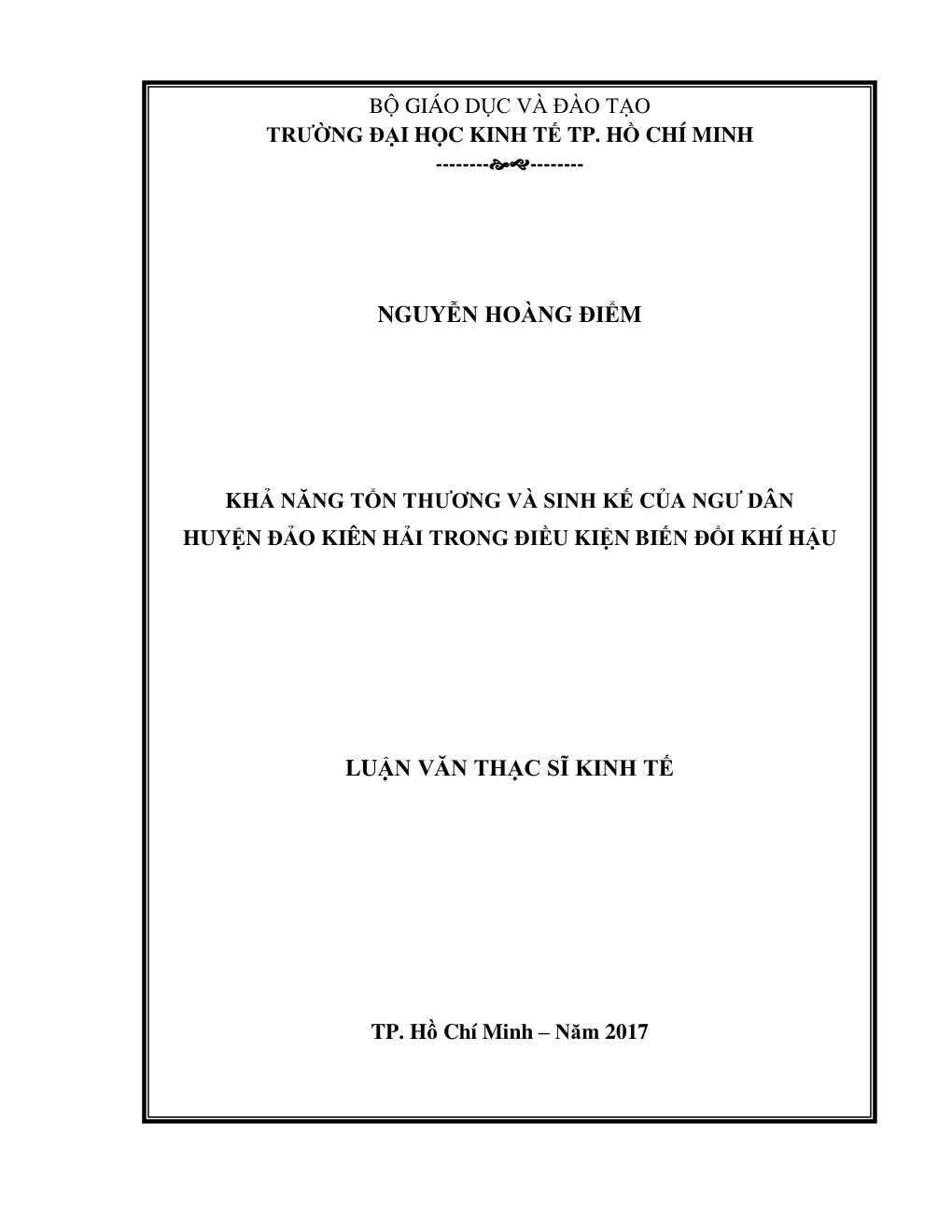 - Tên Luận văn: Khả năng tổn thương và sinh kế của ngư dân huyện đảo Kiên Hải trong điều kiện biến đổi khí hậu