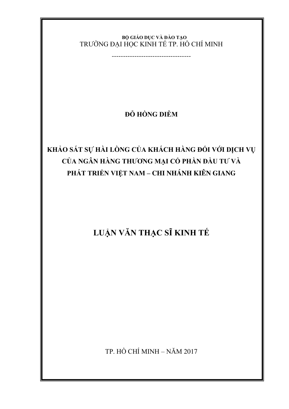 • Tên Luận văn: Khảo sát sự hài lòng của khách hàng đối với dịch vụ của Ngân hàng Thương mại Cổ phần Đầu tư và Phát triển Việt Nam – Chi nhánh Kiên Giang