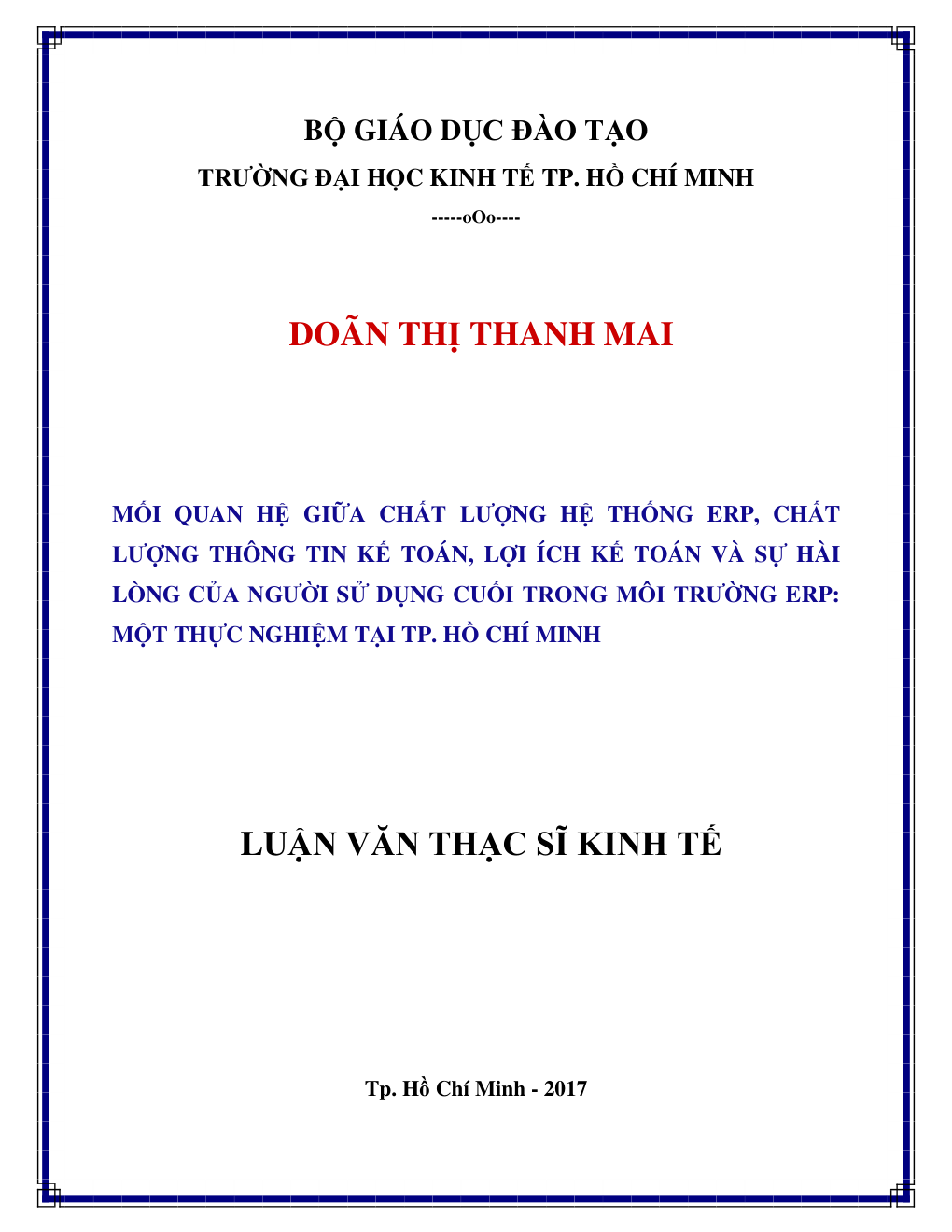 - Tên Luận văn: Mối quan hệ giữa chất lượng hệ thống ERP, chất lượng thông tin kế toán, lợi ích kế toán và sự hài lòng của người sử dụng cuối trong môi trường ERP: Một thực nghiệm tại TP. Hồ Chí Minh