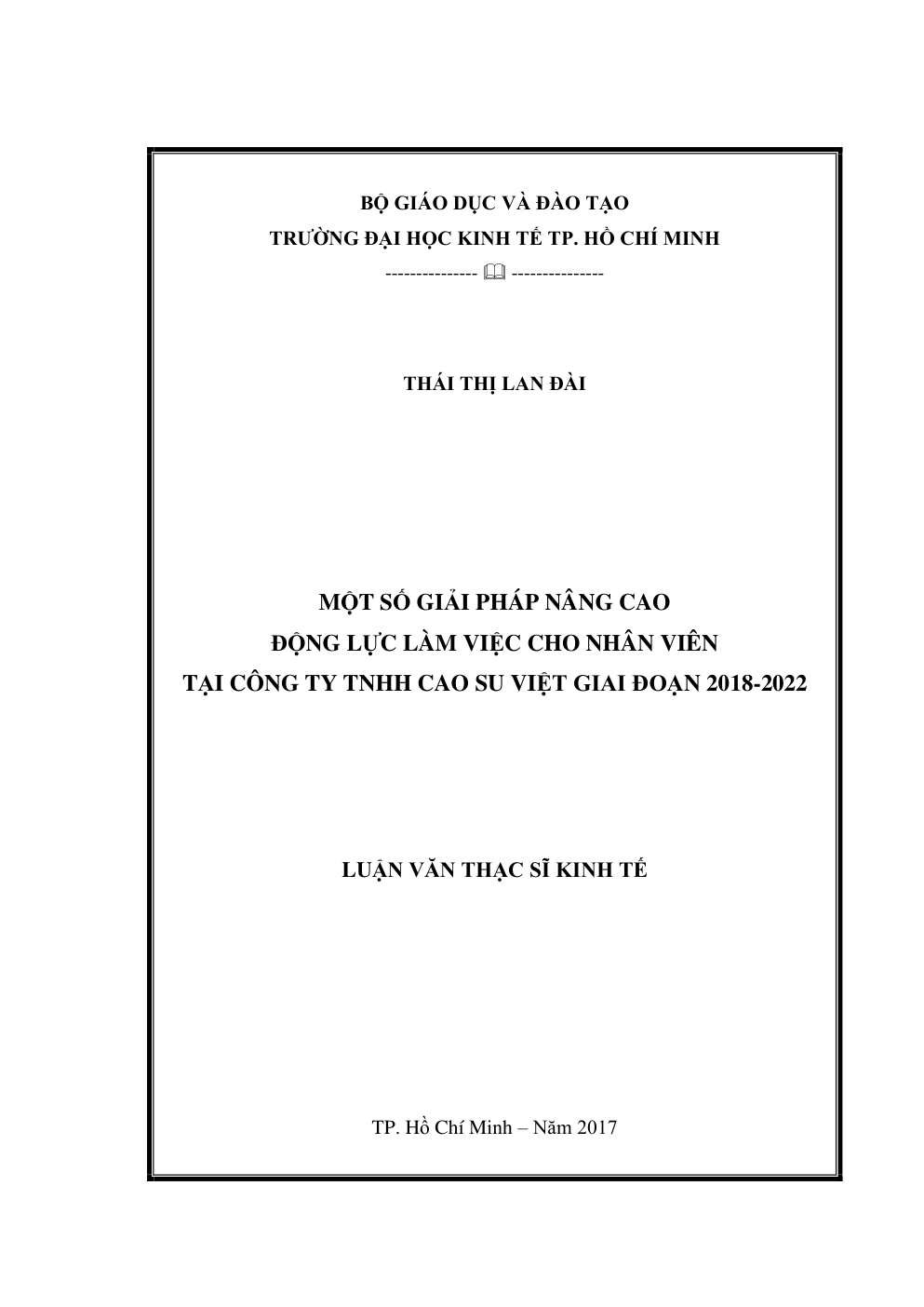 - Tên Luận văn: Một số giải pháp nâng cao động lực làm việc cho nhân viên tại Công ty TNHH Cao Su Việt giai đoạn 2018-2022