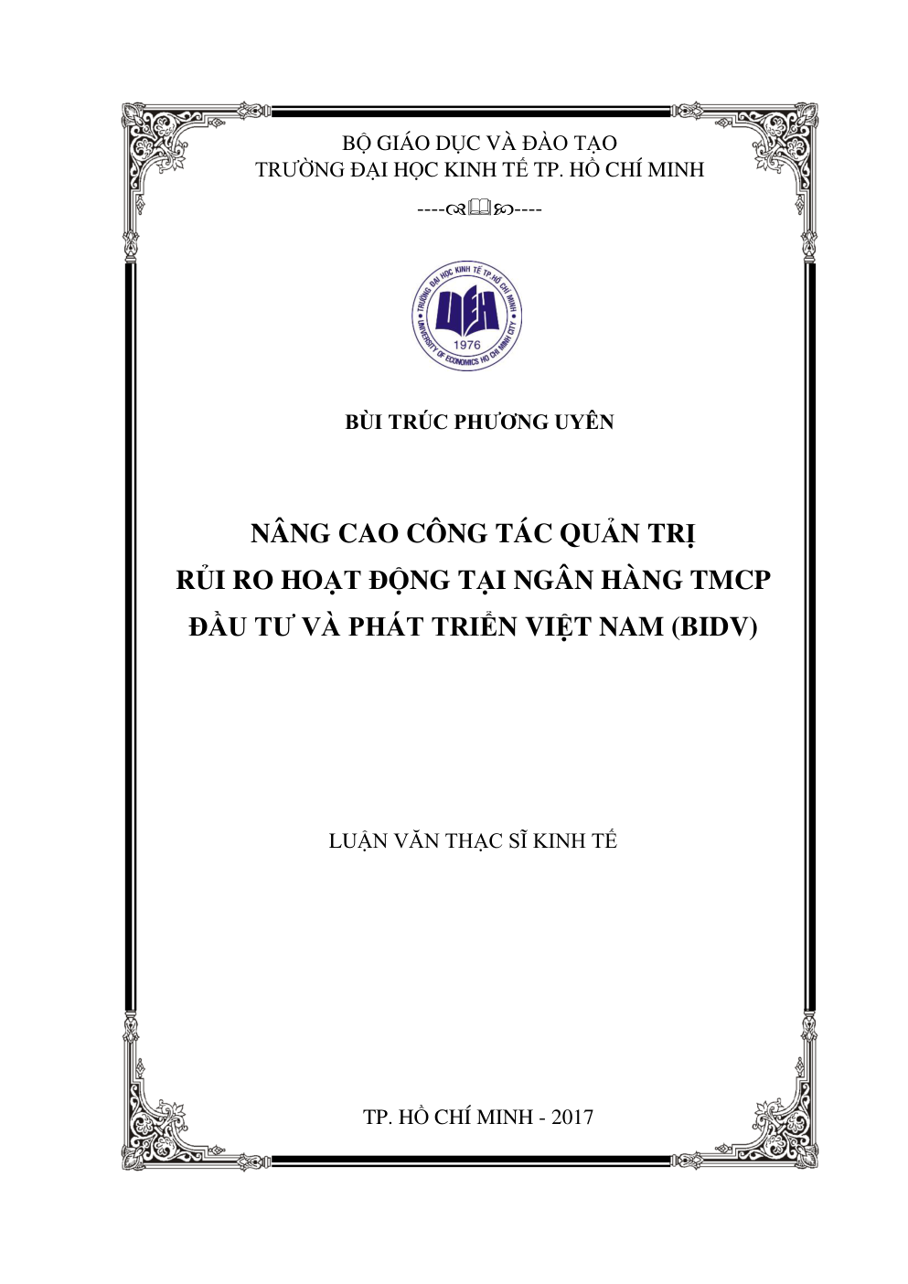 - Tên Luận văn: NÂNG CAO CÔNG TÁC QUẢN TRỊ RỦI RO HOẠT ĐỘNG TẠI NGÂN HÀNG TMCP ĐẦU TƯ VÀ PHÁT TRIỂN VIỆT NAM (BIDV)