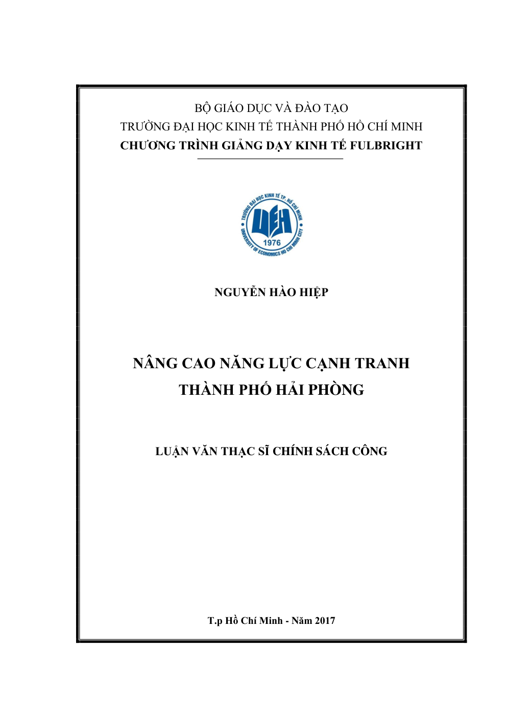 • Tên Luận văn: Nâng cao năng lực cạnh tranh thành phố Hải Phòng