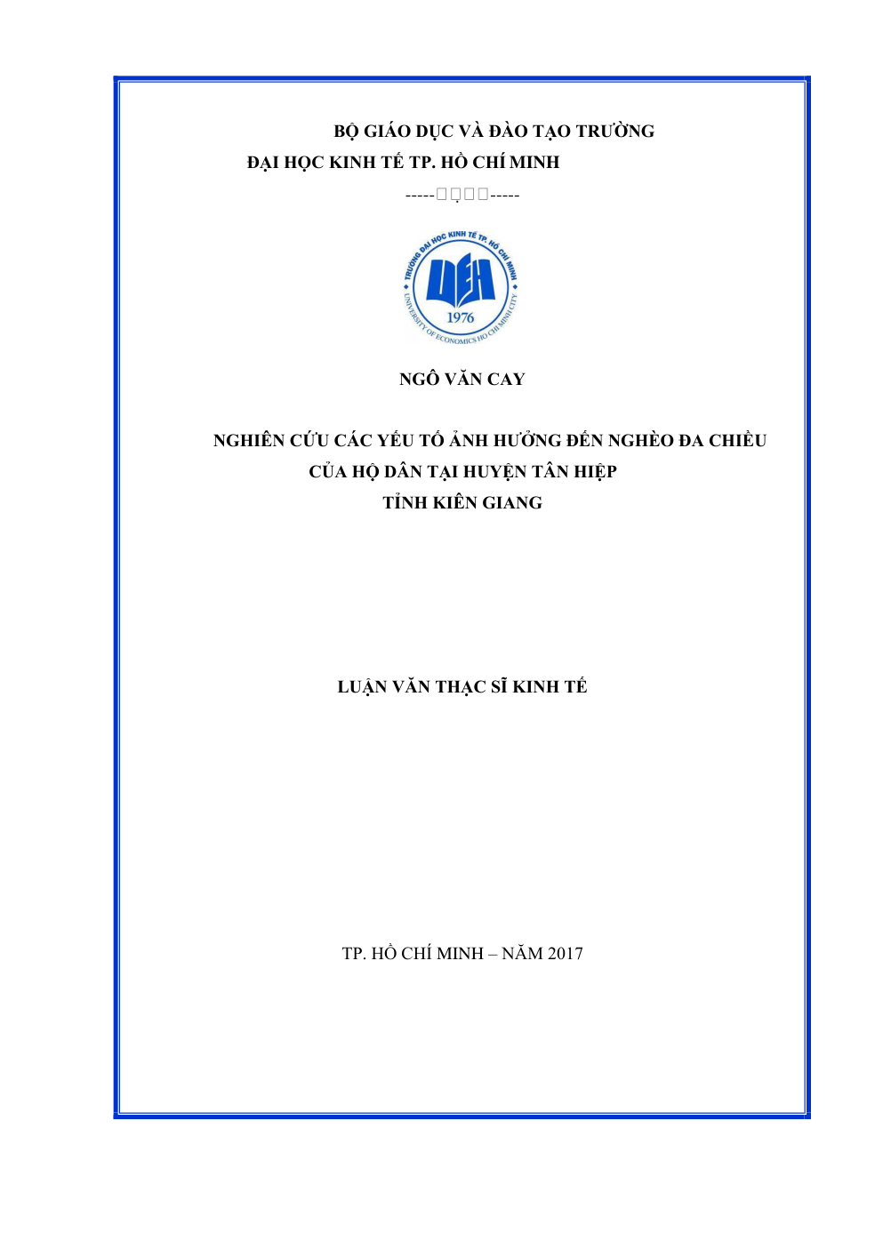 - Tên Luận văn: Nghiên cứu các yếu tố ảnh hưởng đến nghèo đa chiều của hộ dân tại Huyện Tân Hiệp, Tỉnh Kiên Giang