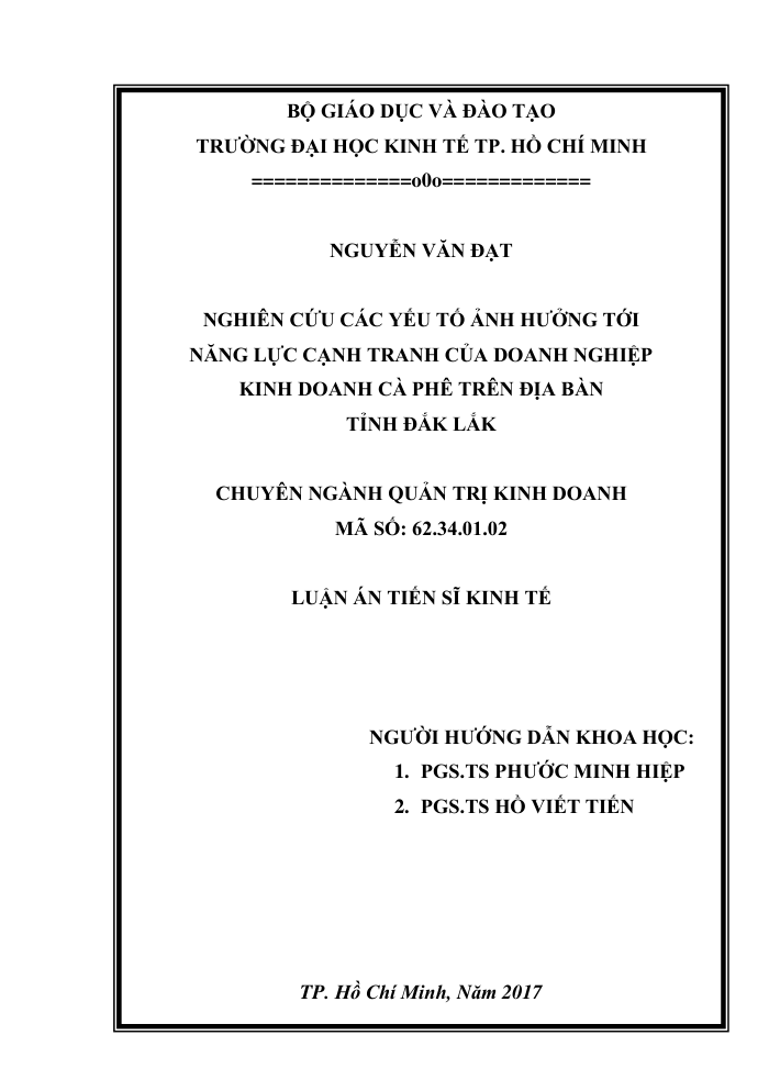 Nghiên Cứu Các Yếu Tố Ảnh Hưởng Tới Năng Lực Cạnh Tranh Của Doanh Nghiệp Kinh Doanh Cà Phê Trên Địa Bàn Tỉnh Đắk Lắk