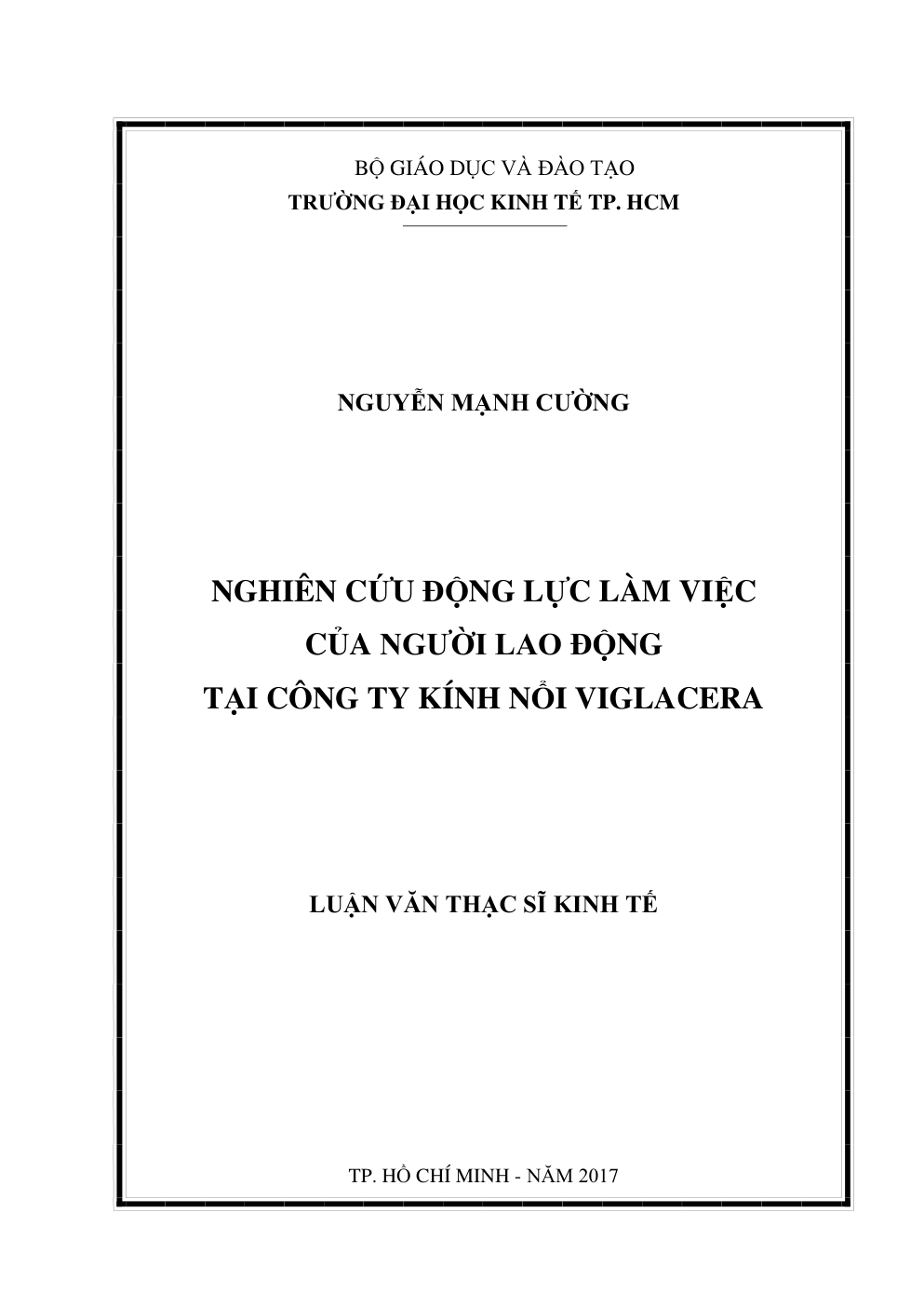 - Tên Luận văn: Nghiên cứu động lực làm việc của người lao động tại Công ty Kính nổi Viglacera