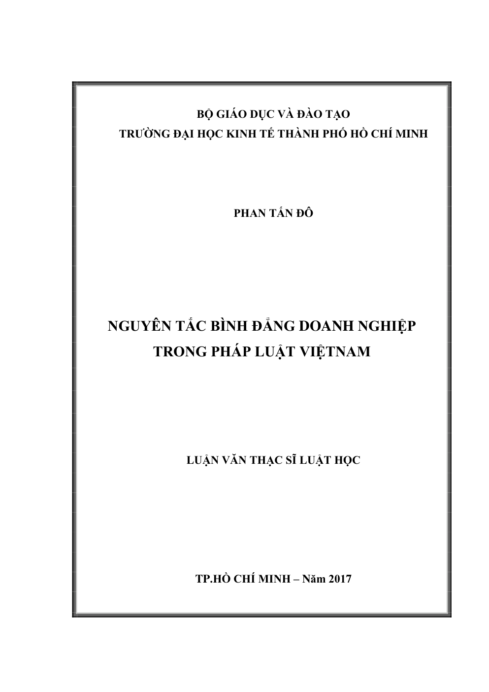 - Tên Luận văn: Nguyên tắc bình đẳng doanh nghiệp trong pháp luật Việt Nam