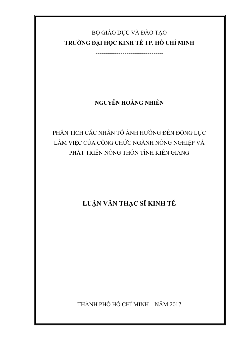 - Tên Luận văn: Phân tích các nhân tố ảnh hưởng đến động lực làm việc của công chức ngành Nông nghiệp và Phát triển nông thôn tỉnh Kiên Giang