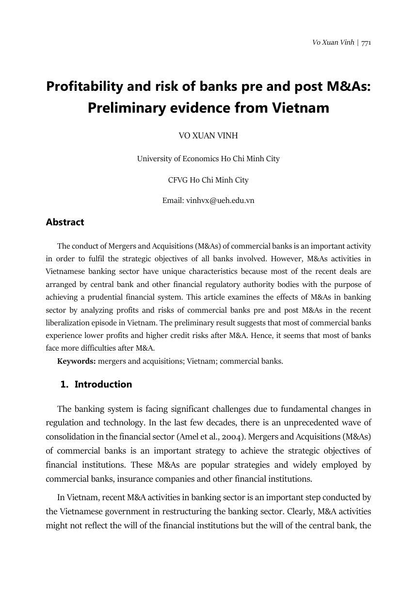 - Từ khoá: mergers and acquisitions (sáp nhập và mua lại); Vietnam (Việt Nam); commercial banks (ngân hàng thương mại).