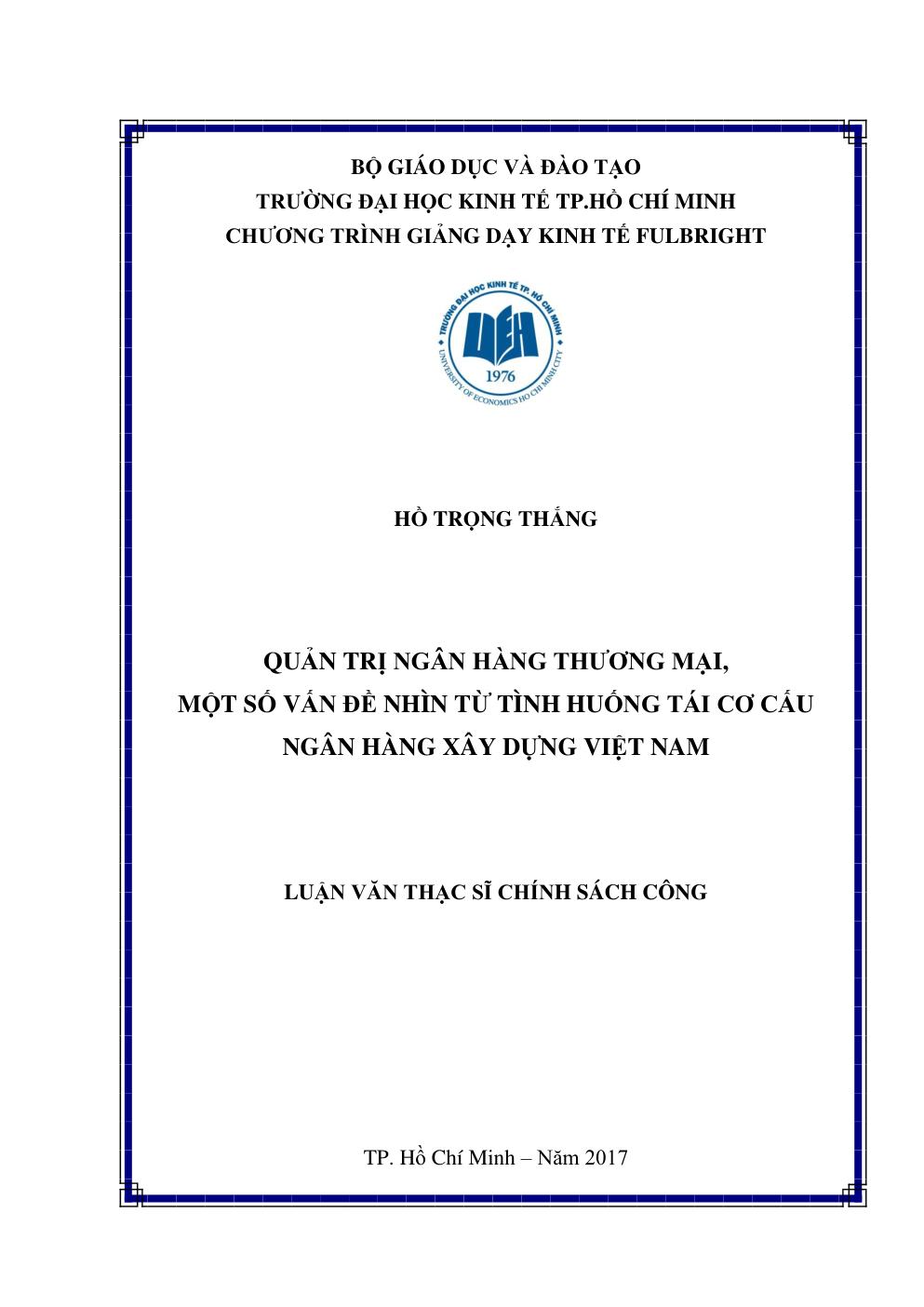 - Tên Luận văn: Quản trị ngân hàng thương mại, một số vấn đề nhìn từ tình huống tái cơ cấu Ngân hàng Xây dựng Việt Nam