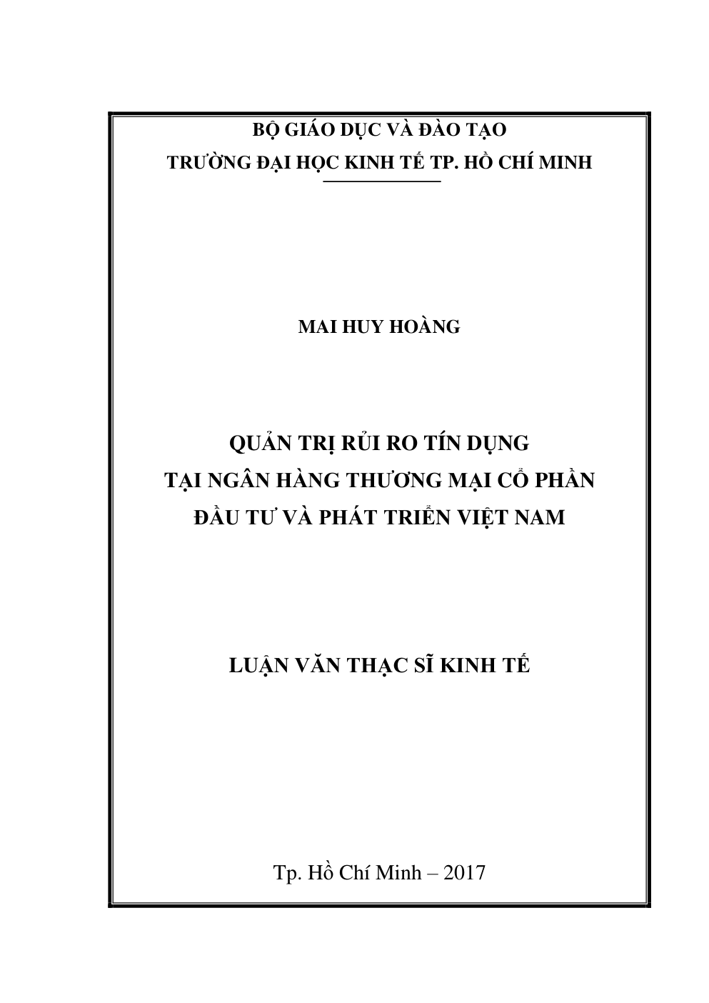 • Tên Luận văn: Quản trị rủi ro tín dụng tại Ngân hàng Thương mại cổ phần Đầu tư và Phát triển Việt Nam