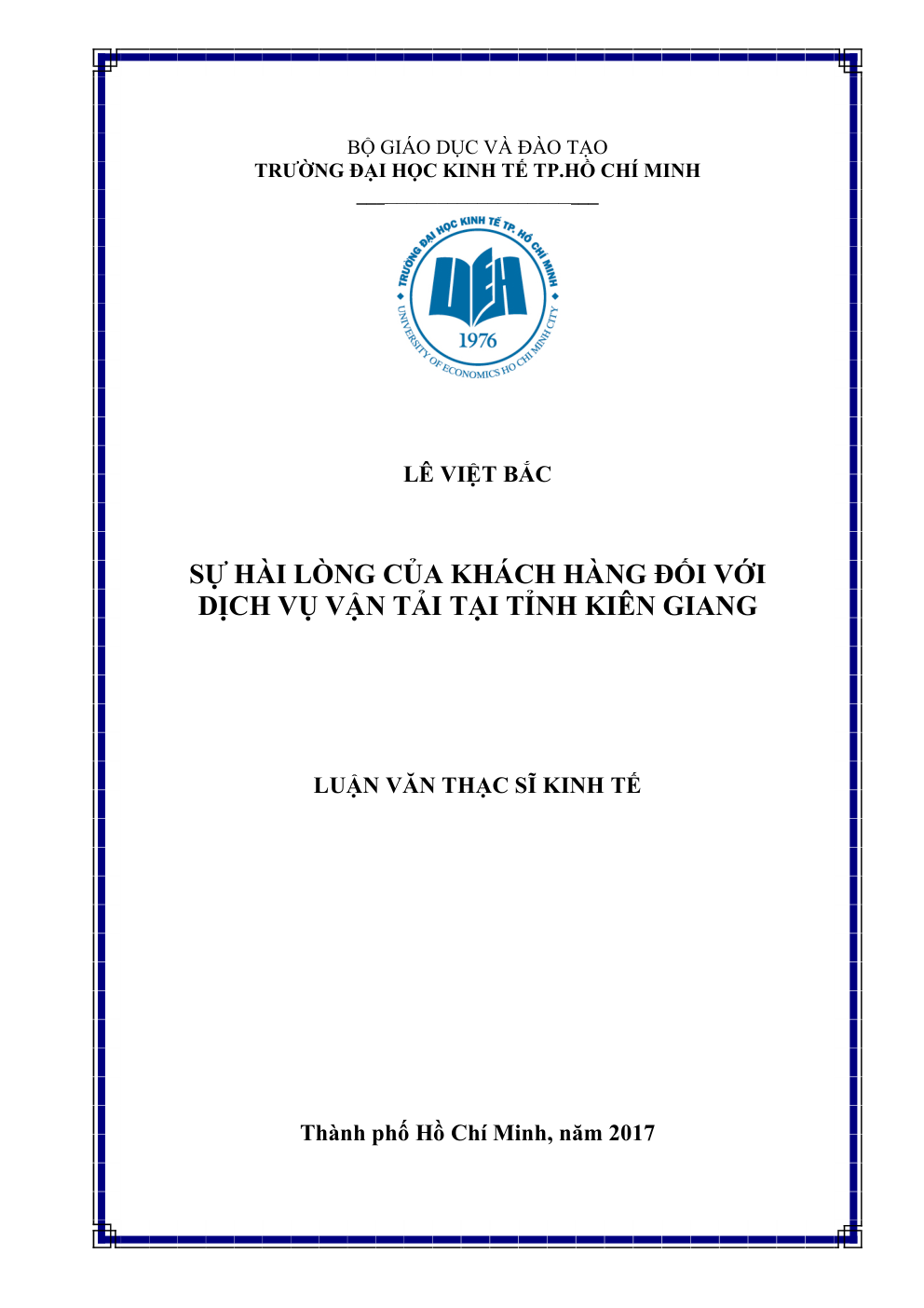 - Tên Luận văn: SỰ HÀI LÒNG CỦA KHÁCH HÀNG ĐỐI VỚI DỊCH VỤ VẬN TẢI TẠI TỈNH KIÊN GIANG