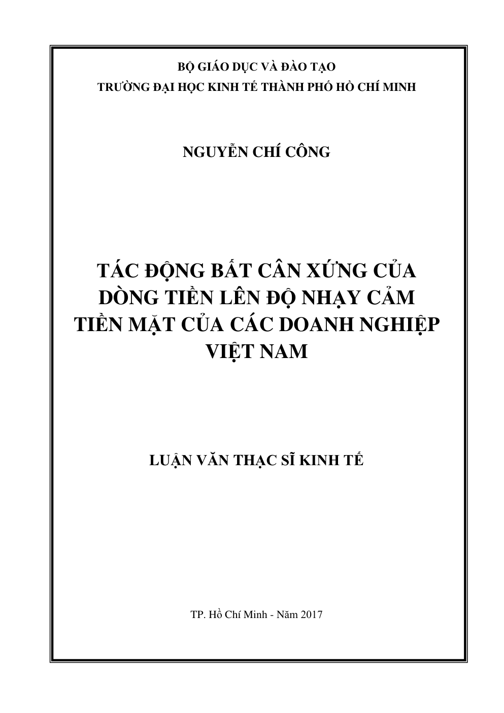 - Tên Luận văn: Tác động bất cân xứng của dòng tiền lên độ nhạy cảm tiền mặt của các doanh nghiệp Việt Nam