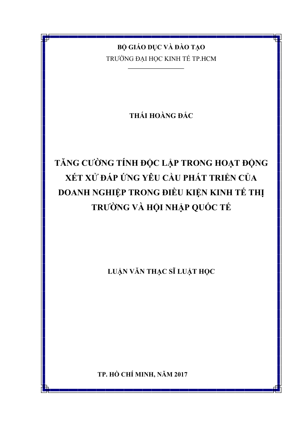 - Tên Luận văn: Tăng cường tính độc lập trong hoạt động xét xử đáp ứng yêu cầu phát triển của doanh nghiệp trong điều kiện kinh tế thị trường và hội nhập quốc tế