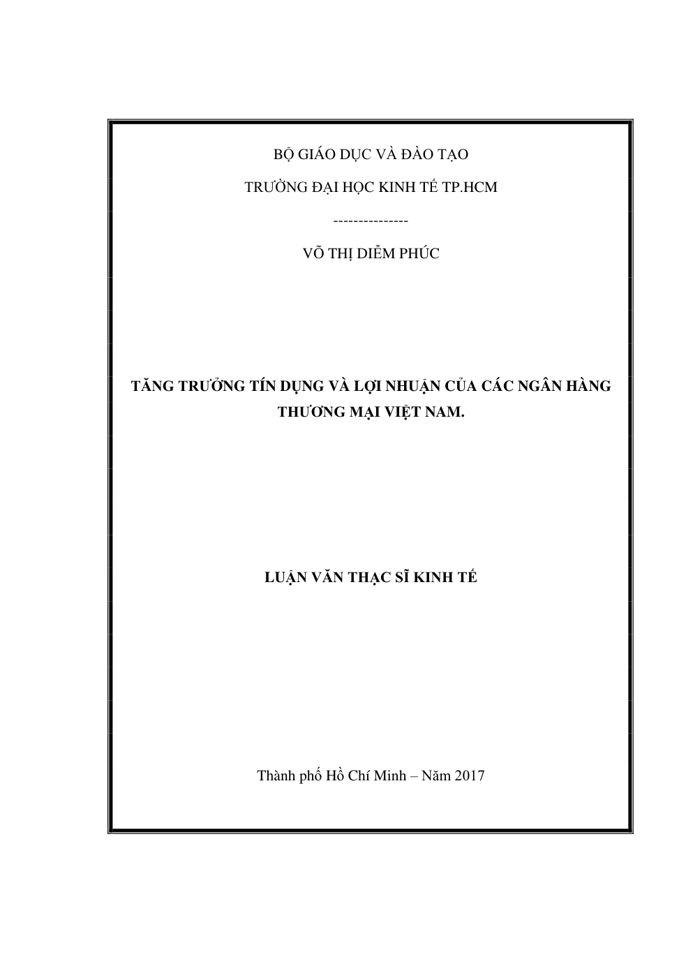 - Tên Luận văn: Tăng trưởng tín dụng và lợi nhuận của các Ngân hàng Thương mại Việt Nam.