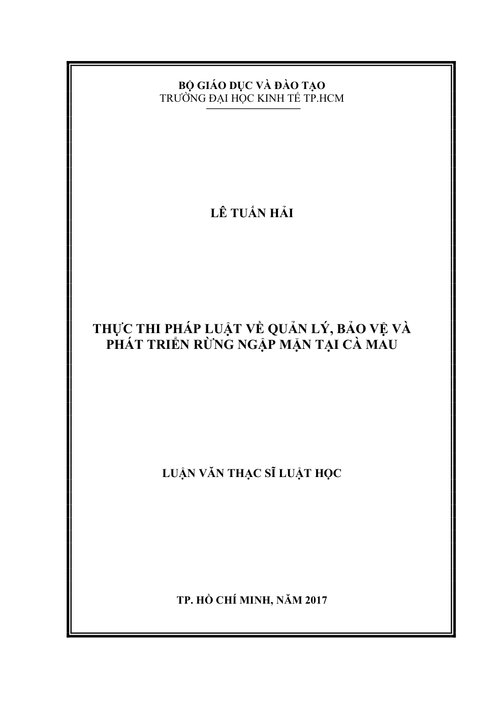 - Tên Luận văn: Thực thi pháp luật về quản lý, bảo vệ và phát triển rừng ngập mặn tại Cà Mau