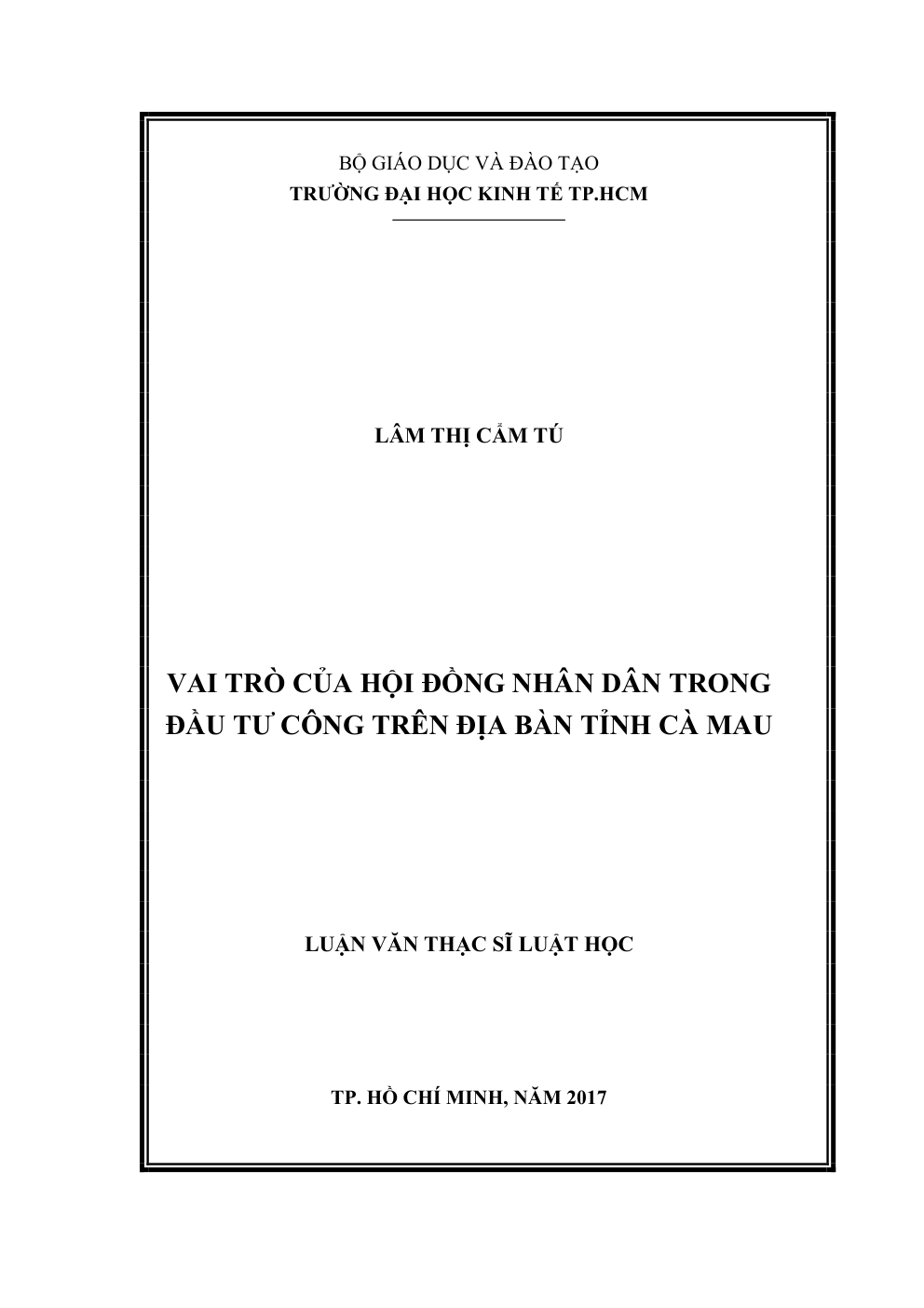 - Tên Luận văn: Vai trò của Hội đồng nhân dân trong đầu tư công trên địa bàn tỉnh Cà Mau