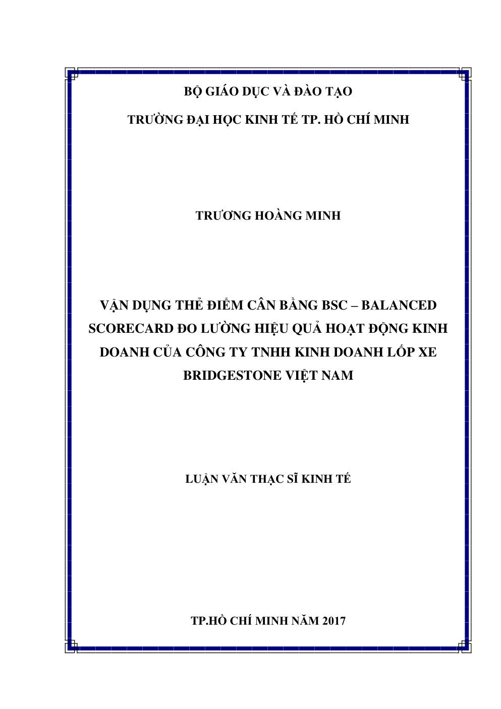 • Tên Luận văn: Vận dụng Thẻ điểm cân bằng BSC – Balanced Scorecard đo lường hiệu quả hoạt động kinh doanh của Công ty TNHH Kinh doanh Lốp xe Bridgestone Việt Nam