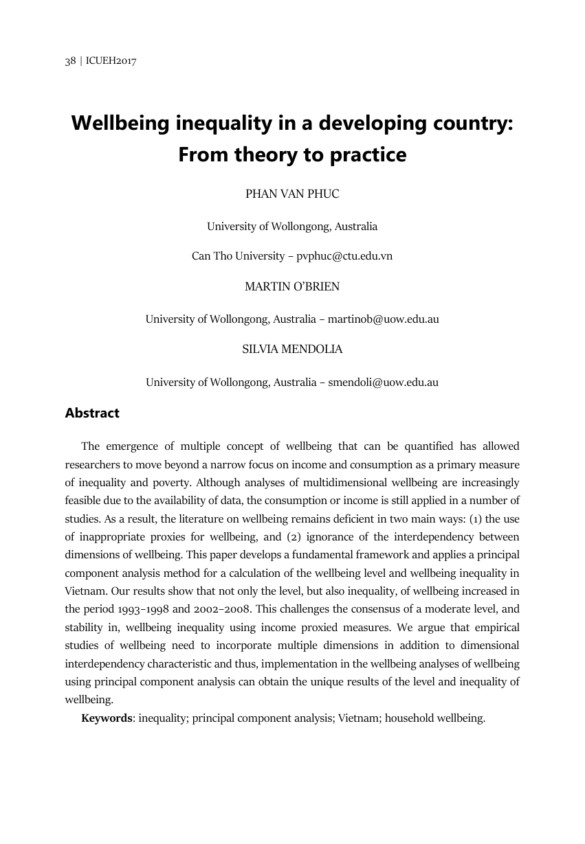 - Nơi xuất bản: Đại học Wollongong, Australia (Liên kết học thuật của các tác giả, bài viết được trình bày tại hội thảo ICUEH2017)