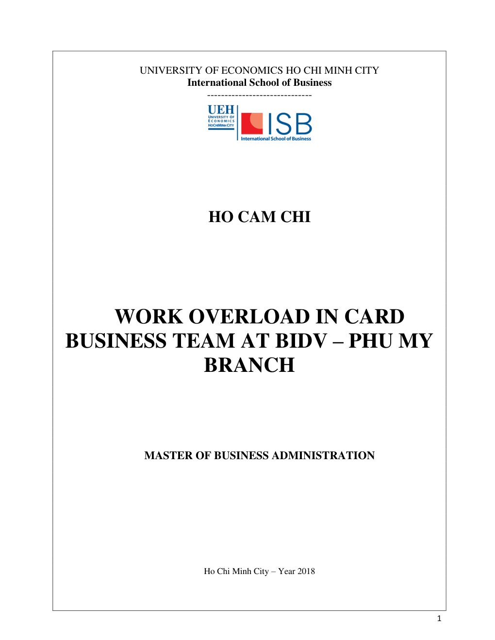 - Tên Luận văn: WORK OVERLOAD IN CARD BUSINESS TEAM AT BIDV – PHU MY BRANCH (Quá tải công việc tại đội kinh doanh thẻ Ngân hàng TMCP Đầu tư và Phát triển Việt Nam – Chi nhánh Phú Mỹ)